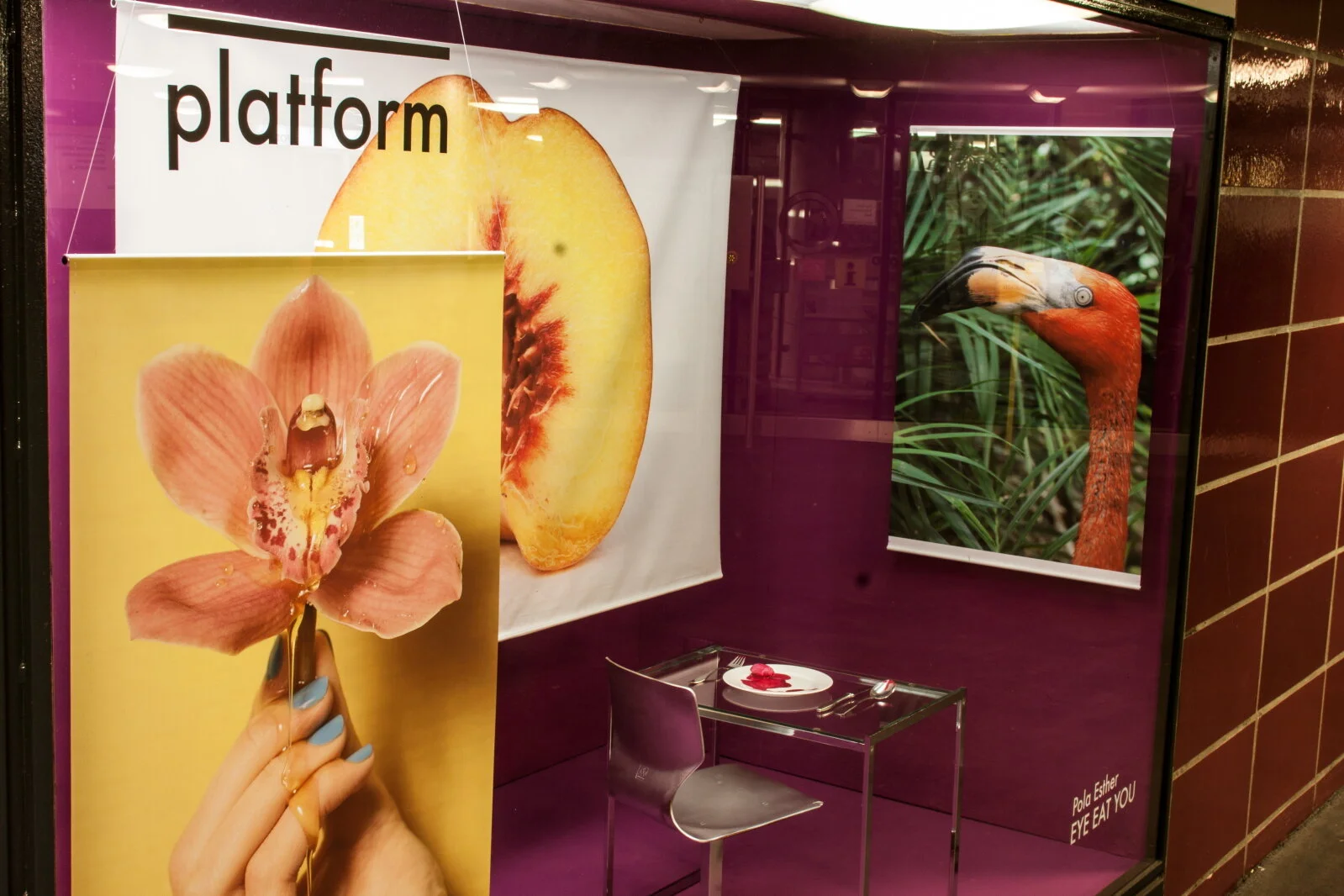 The installation Eye Eat You was debuted in an exhibition at Kleistpark U-Bahn station in Berlin.